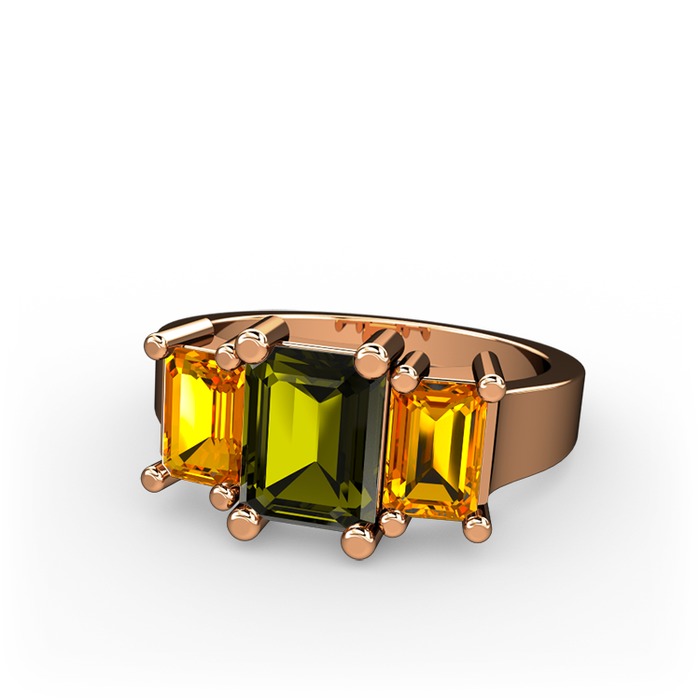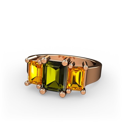 Peridot ve sitrin 925 ayar rose altın kaplama gümüş yüzük
