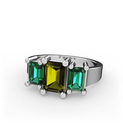 Peridot ve yeşil kuvars 18 ayar beyaz altın yüzük