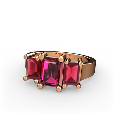 Rodolit garnet ve kök yakut 14 ayar rose altın yüzük