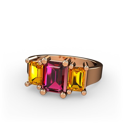 Rodolit garnet ve sitrin 14 ayar rose altın yüzük
