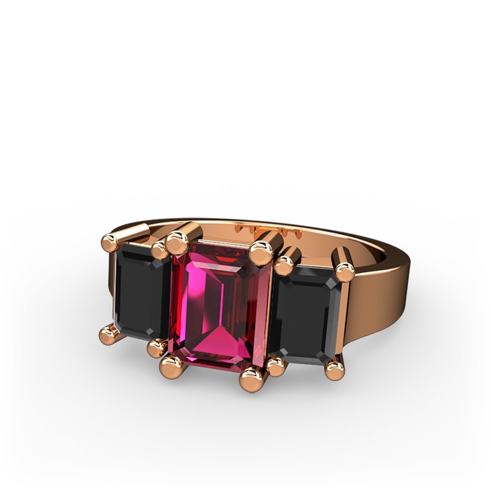 Rodolit garnet ve siyah zirkon 18 ayar rose altın yüzük
