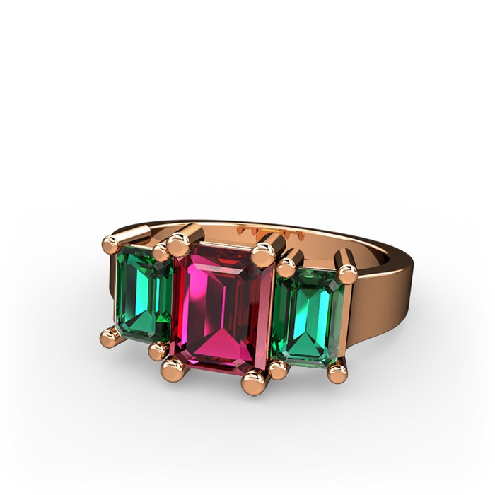 Rodolit garnet ve yeşil kuvars 8 ayar rose altın yüzük