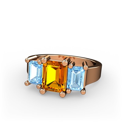 Sitrin ve akuamarin 18 ayar rose altın yüzük