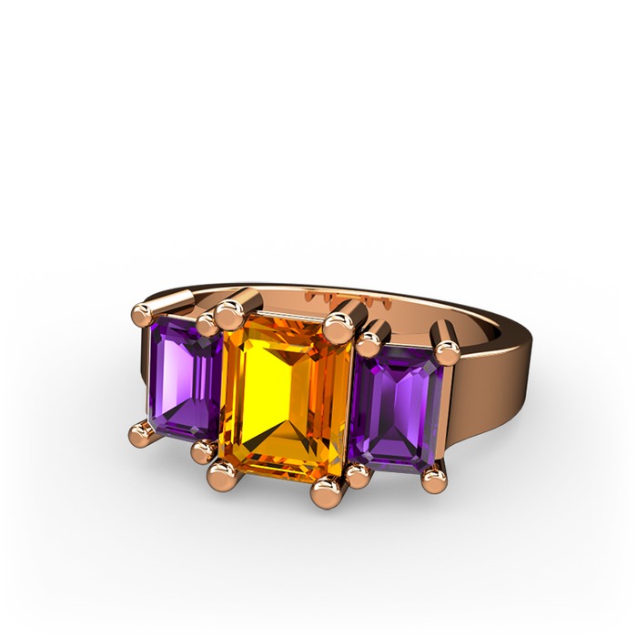 Sitrin ve ametist 8 ayar rose altın yüzük