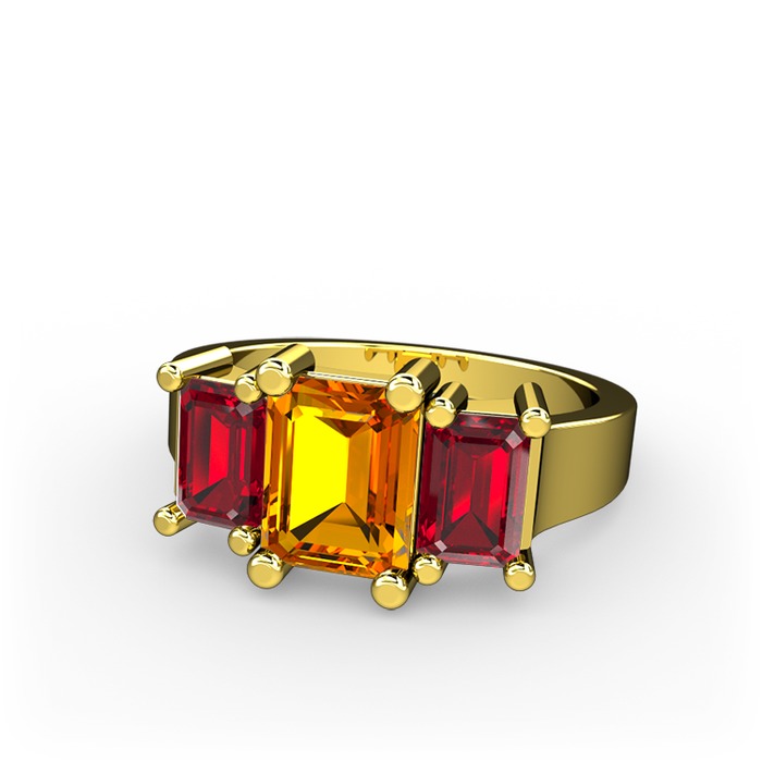 Sitrin ve garnet 925 ayar altın kaplama gümüş yüzük