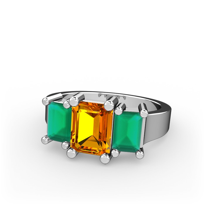 Sitrin ve kök zümrüt 14 ayar beyaz altın yüzük