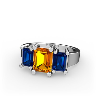 Sitrin ve lab safir 8 ayar beyaz altın yüzük