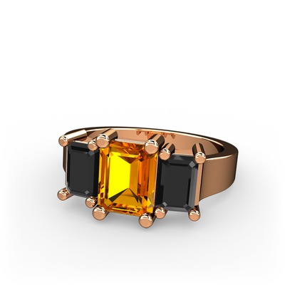Sitrin ve siyah zirkon 18 ayar rose altın yüzük