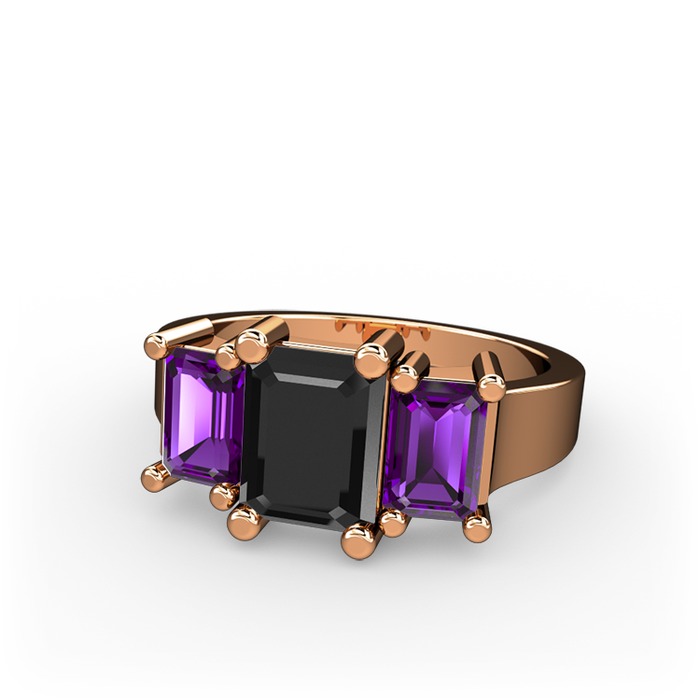Siyah zirkon ve ametist 18 ayar rose altın yüzük