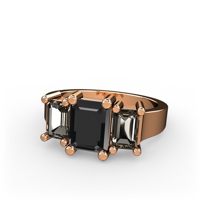 Siyah zirkon ve dumanlı kuvars 8 ayar rose altın yüzük