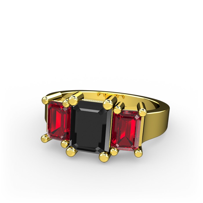 Siyah zirkon ve garnet 18 ayar altın yüzük