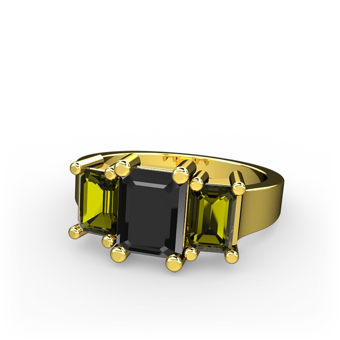 Siyah zirkon ve peridot 14 ayar altın yüzük