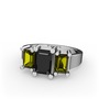 Siyah zirkon ve peridot 18 ayar beyaz altın yüzük