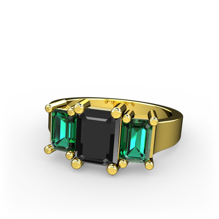 Siyah zirkon ve yeşil kuvars 925 ayar altın kaplama gümüş yüzük
