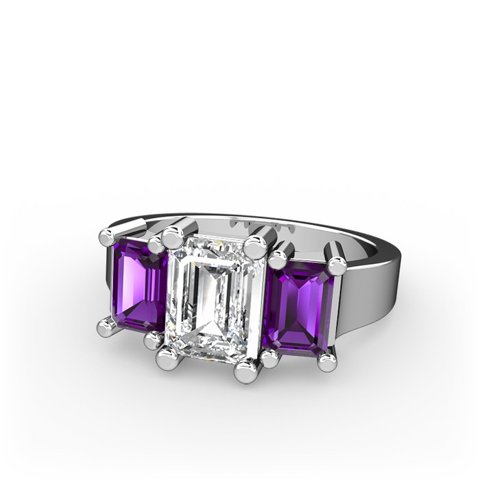Swarovski ve ametist 8 ayar beyaz altın yüzük