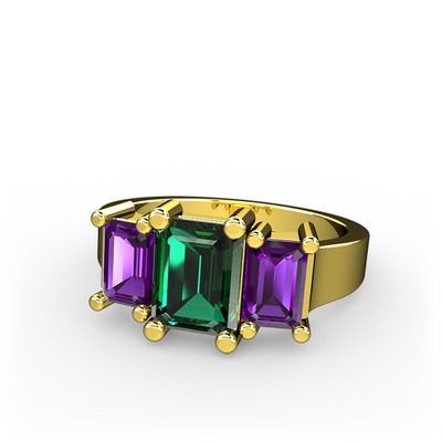 Yeşil kuvars ve ametist 14 ayar altın yüzük