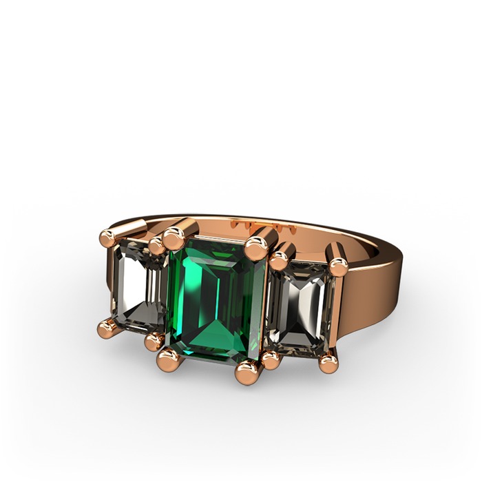 Yeşil kuvars ve dumanlı kuvars 925 ayar rose altın kaplama gümüş yüzük