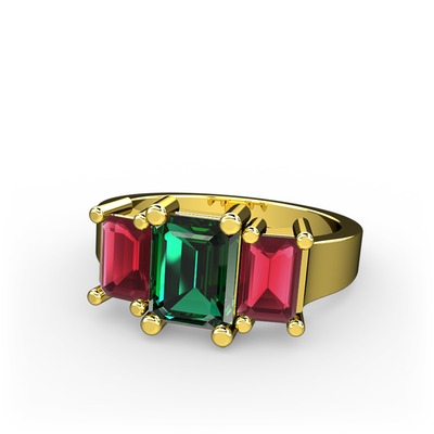 Yeşil kuvars ve kök yakut 14 ayar altın yüzük
