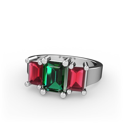Yeşil kuvars ve kök yakut 14 ayar beyaz altın yüzük