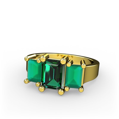 Yeşil kuvars ve kök zümrüt 8 ayar altın yüzük