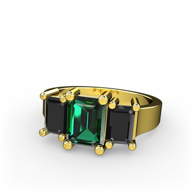 Yeşil kuvars ve siyah zirkon 925 ayar altın kaplama gümüş yüzük