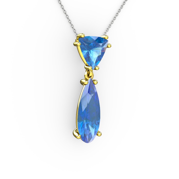 Akuamarin 18 ayar altın kolye (40 cm beyaz altın rolo zincir)