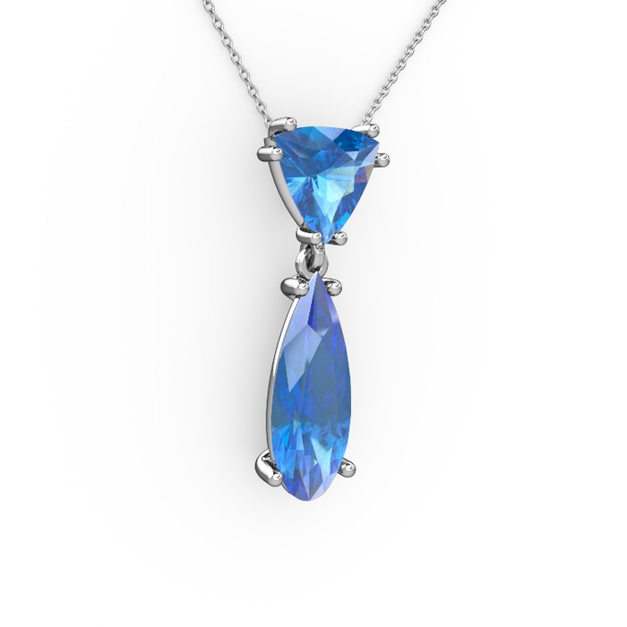 Akuamarin 18 ayar beyaz altın kolye (40 cm gümüş rolo zincir)