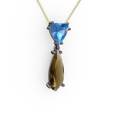 Akuamarin ve dumanlı kuvars 925 ayar siyah rodyum kaplama gümüş kolye (40 cm altın rolo zincir)