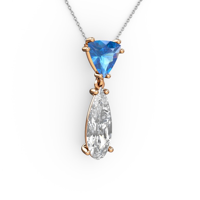 Akuamarin ve swarovski 14 ayar rose altın kolye (40 cm beyaz altın rolo zincir)