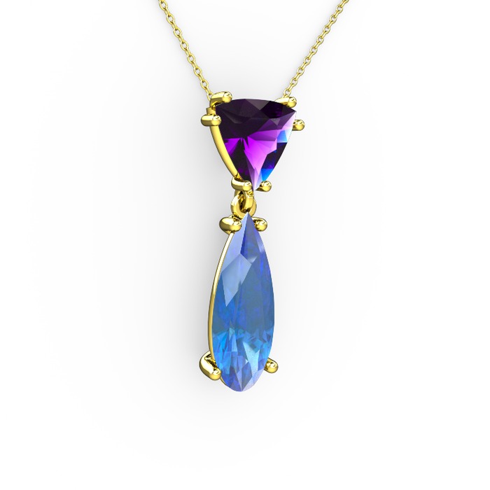 Ametist ve akuamarin 14 ayar altın kolye (40 cm altın rolo zincir)