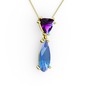 Ametist ve akuamarin 14 ayar altın kolye (40 cm gümüş rolo zincir)