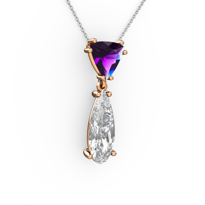 Ametist ve beyaz zirkon 14 ayar rose altın kolye (40 cm beyaz altın rolo zincir)