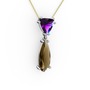 Ametist ve dumanlı kuvars 14 ayar beyaz altın kolye (40 cm altın rolo zincir)