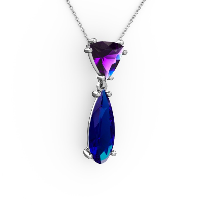 Ametist ve lab safir 925 ayar gümüş kolye (40 cm beyaz altın rolo zincir)
