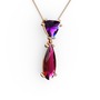Ametist ve rodolit garnet 18 ayar rose altın kolye (40 cm rose altın rolo zincir)