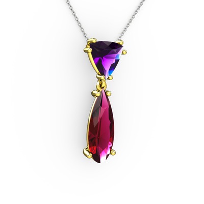 Ametist ve rodolit garnet 8 ayar altın kolye (40 cm beyaz altın rolo zincir)