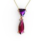 Ametist ve rodolit garnet 8 ayar rose altın kolye (40 cm gümüş rolo zincir)