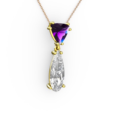 Ametist ve swarovski 14 ayar altın kolye (40 cm rose altın rolo zincir)