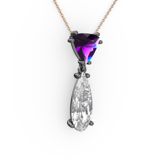 Ametist ve swarovski 925 ayar siyah rodyum kaplama gümüş kolye (40 cm gümüş rolo zincir)