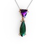 Ametist ve yeşil kuvars 14 ayar rose altın kolye (40 cm beyaz altın rolo zincir)