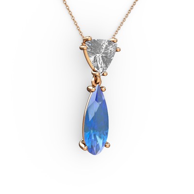 Beyaz zirkon ve akuamarin 18 ayar rose altın kolye (40 cm rose altın rolo zincir)