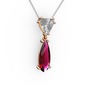 Beyaz zirkon ve rodolit garnet 14 ayar rose altın kolye (40 cm beyaz altın rolo zincir)