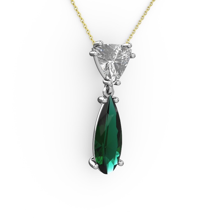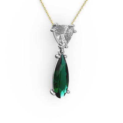 Beyaz zirkon ve yeşil kuvars 18 ayar beyaz altın kolye (40 cm altın rolo zincir)
