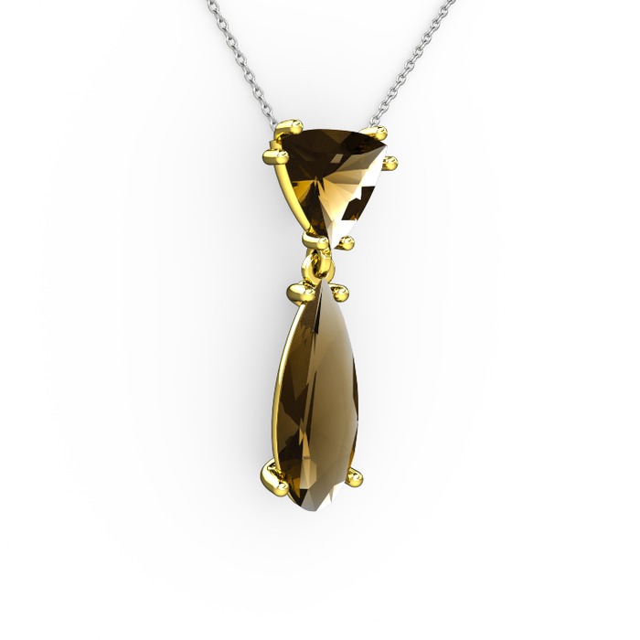 Dumanlı kuvars 8 ayar altın kolye (40 cm beyaz altın rolo zincir)