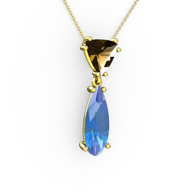Dumanlı kuvars ve akuamarin 8 ayar altın kolye (40 cm altın rolo zincir)