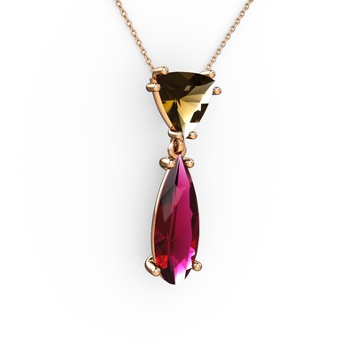 Dumanlı kuvars ve rodolit garnet 8 ayar rose altın kolye (40 cm rose altın rolo zincir)