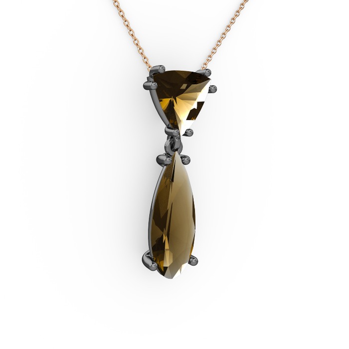 Dumanlı kuvars 925 ayar siyah rodyum kaplama gümüş kolye (40 cm rose altın rolo zincir)