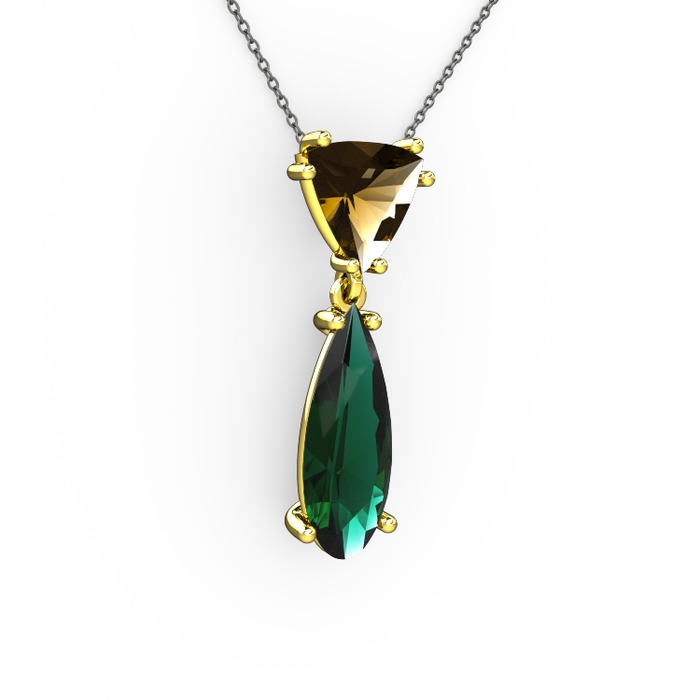 Dumanlı kuvars ve yeşil kuvars 14 ayar altın kolye (40 cm gümüş rolo zincir)