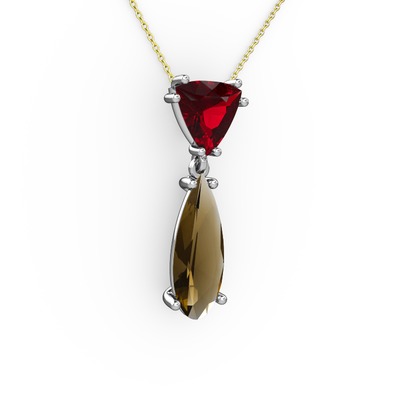 Garnet ve dumanlı kuvars 18 ayar beyaz altın kolye (40 cm altın rolo zincir)