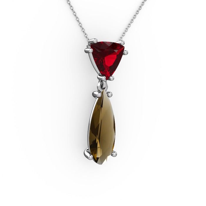 Garnet ve dumanlı kuvars 8 ayar beyaz altın kolye (40 cm beyaz altın rolo zincir)